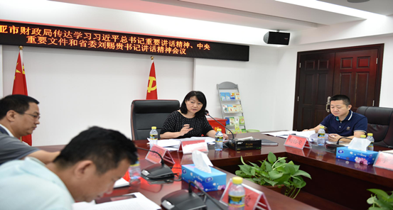 王瑜局长强调要贯彻落实习近平总书记在庆祝海南建省办经济特区30周年大会上的重要讲话精神以及中央支持海南全面深化改革开放的指导意见和省委刘赐贵书记讲话精神,深刻理解海南建省办经济特区30年来取得的成就和历史定位,把握好当前历史机遇和新的战略定位,不忘初心,牢记使命,切实把思想和行动统一到市委市政府的要求上来,结合财政工作实际,创新财政新发展理念,坚定不移走改革开放之路,扛起争当建设自由贸易区排头兵的财政担当,强力推动海南建设,继续成为改革开放的重要窗口、实验平台、开拓者和实干家,谱写海南发展新篇章。