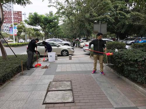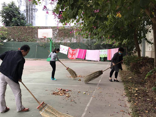 在各个卫生责任区,大家发扬"撸起袖子加油干"的精神,兵分几路热火朝天地进行地毯式清理,认认真真、仔仔细细地清理每一个卫生死角,重点清除积存垃圾,清理周边绿化带里的杂物,清除室内、楼道、外环境的积存垃圾和污物;仔细清扫了主干道落叶、树枝、烟头等杂物,全面提升环境卫生。